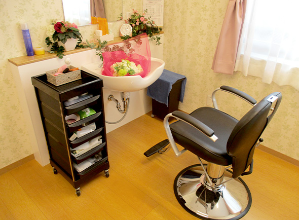 「いつまでも美しく綺麗でありたい」「格好良くいたい」という気持ちは、生き生きその方らしくお過ごしいただく上でとても大切です。 トミオケアのホームでは施設内に理美容室を設置。専属の美容師と連携し、ご希望に沿ったヘアスタイルを提供しています。